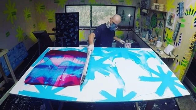 Maui artist Welzie painting a new art piece in his South Maui Studio